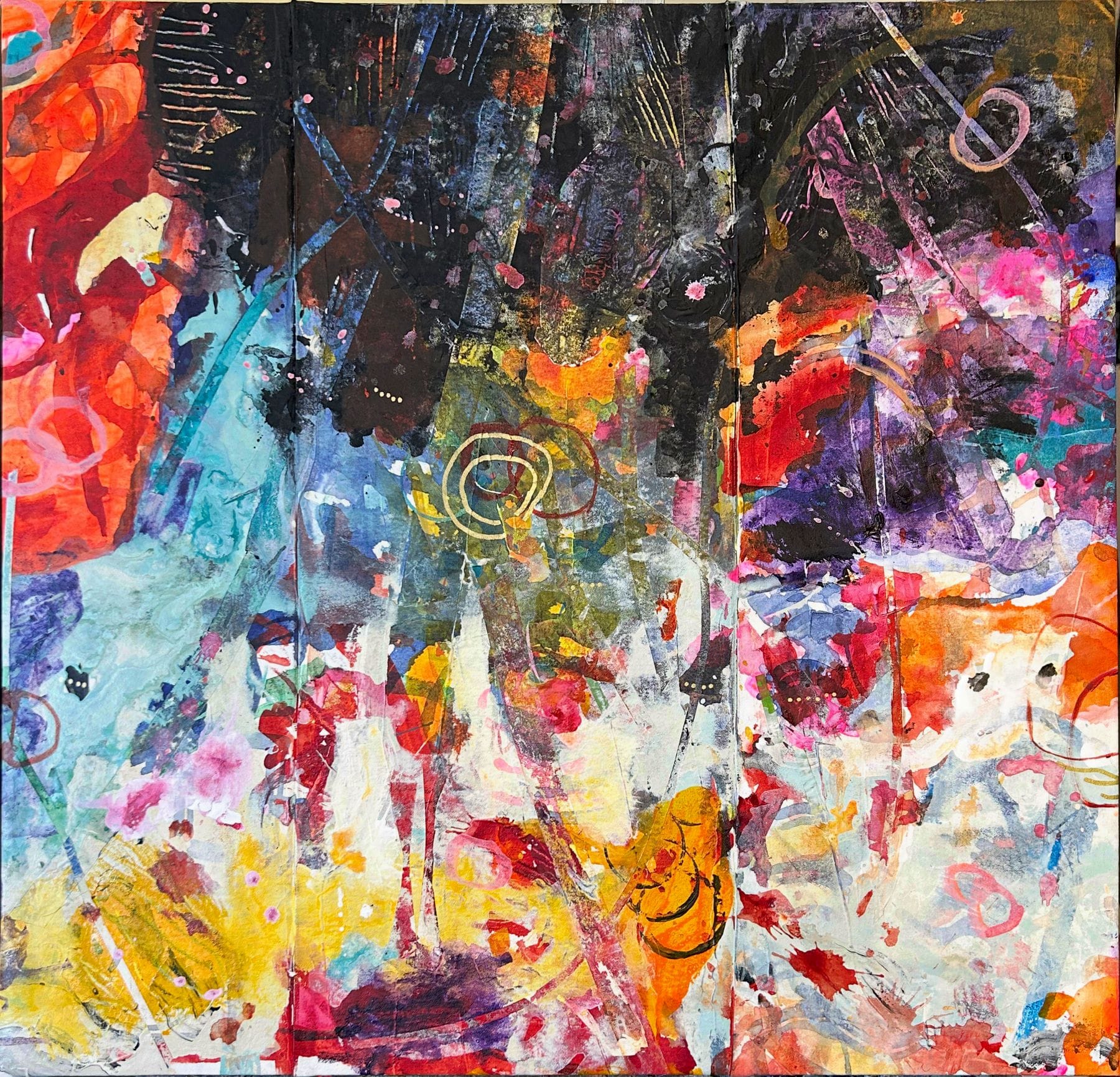 A large abstract on canvas, from my Past Battles Series. Dan-no-Ura was a navel battle 950 years ago, where the Minamoto defeated the Taira, thus ending the Heian period in Japan. Why do we murder each other? There are more past battles than I have art. But still, I paint.